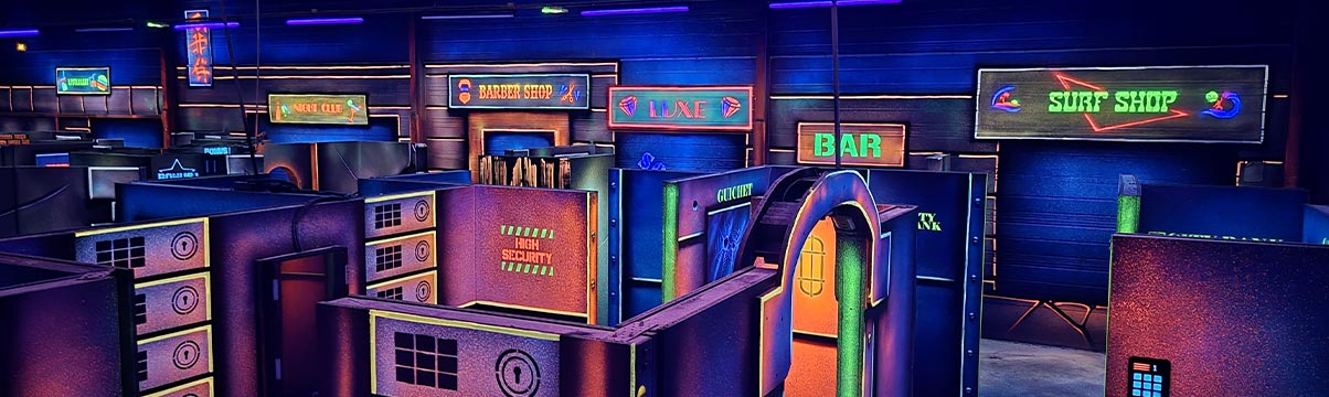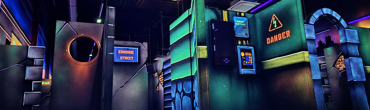 Alors, enfilez votre armure et équipez-vous de votre pistolet laser pour plonger dans un labyrinthe géant : 400 m² de couloirs, 2 tourelles à sniper et de nombreuses fenêtres de tirs.